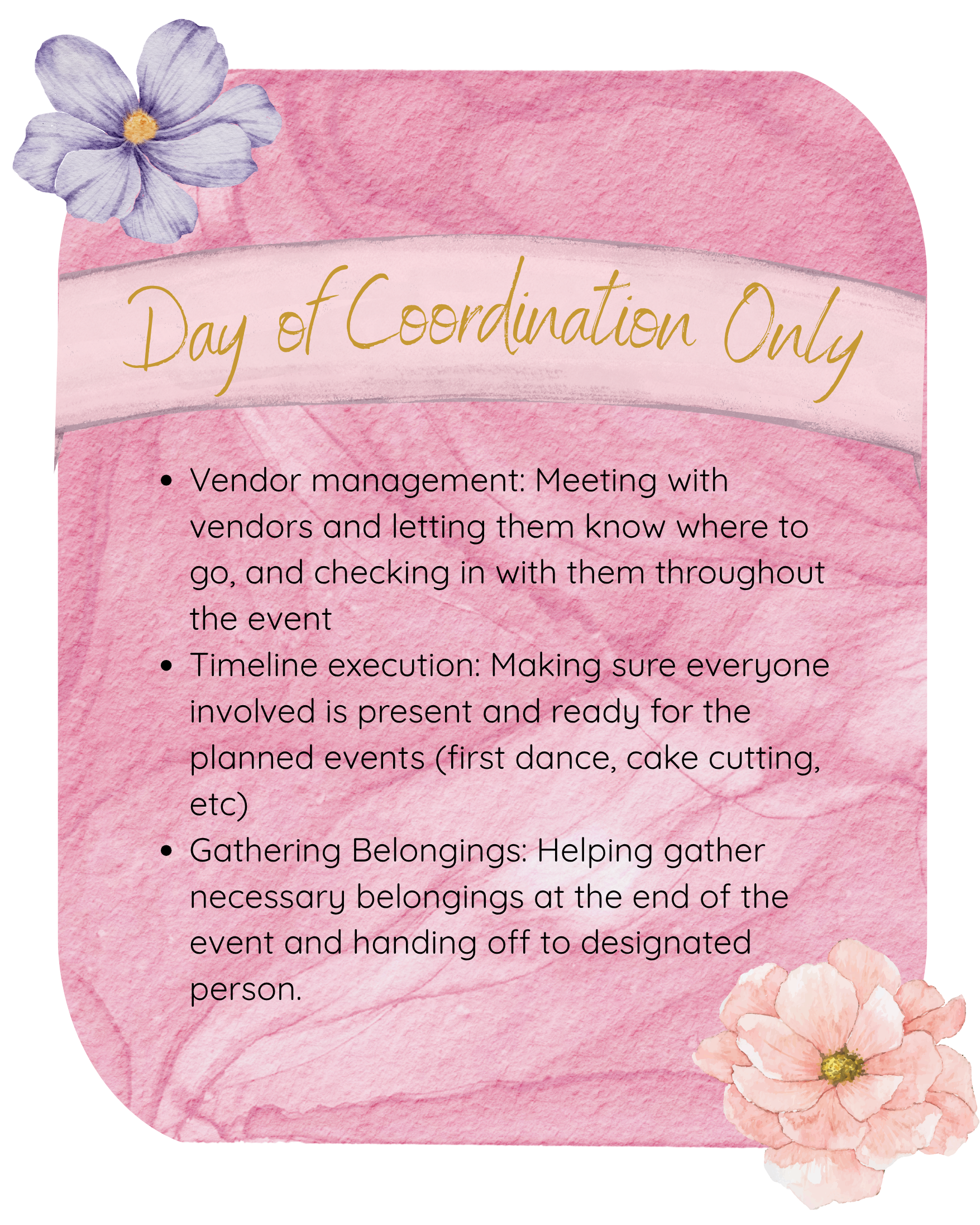 Best for couples who have planned their wedding but want a professional to step in and ensure everything runs smoothly.